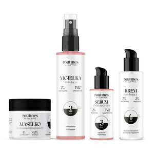W pielęgnacji wieczornej Fabienne stawia na łagodzenie, regenerację i intensywne nawilżenie skóry! Jej wybór to delikatne, ale skuteczne w działaniu Masełko do demakijażu i zmywania SPF. Nie pozostawia efektu zamglonych oczu, usuwając resztki wodoodpornego makijażu i SPF. Mgiełka tonizująca chroni skórę przed odwodnieniem, odświeża i przywraca jej prawidłowy poziom pH. Kompleks biofermentów zawarty w mgiełce i serum łagodzi podrażnienia i przyspiesza regenerację. Zapewnia równowagę mikrobiomu skóry i dba o prawidłową kondycję bariery hydrolipidowej. Całość pielęgnacji dopełnia wielozadaniowy Krem nawilżający, który dzięki lekkiej i nieobciążającej formule długotrwale nawilża oraz chroni przed szkodliwym działaniem czynników zewnętrznych.