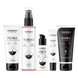 Poznaj wieczorną rutynę pielęgnacyjną Mandaryny! Jest to zestaw kosmetyków, który łączy działanie nawilżające i ujędrniające skórę. Pianka oczyszczająca z glikolipidami delikatnie oczyszcza skórę, pozostawiając ją gładką i nawilżoną - bez nieprzyjemnego uczucia ściągnięcia. Mgiełka chroni przed odwodnieniem i przyspiesza odnowę komórek. Rozświetlające serum z witaminą C redukuje przebarwienia, rozświetla i dodaje skórze energii. Krem pod oczy intensywnie nawilża i ujędrnia delikatną okolicę pod oczami, a dzięki zawartości peptydów sprawia, że zmarszczki są mniej widoczne, a skóra bardziej elastyczna. Maska nocna relaksująca działa przeciwstarzeniowo, zapewnia intensywne, wielopoziomowe nawilżenie oraz chroni skórę przed przesuszeniem.